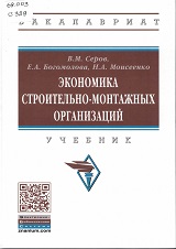 Серов, В. М. Экономика строительно-монтажных организаций : учебник для вузов по направлениям подготовки 38.03.01 "Экономика", 38.03.02 "Менеджмент" (бакалавриат) / В. М. Серов, Е. А. Богомолова, Н. А. Моисеенко ; под общ. ред. В. М. Серова. - Москва : ИНФРА-М, 2022. - 272 с. : ил., табл. - (Высшее образование: Бакалавриат). - Библиогр.: с. 268. - ISBN 978-5-16-015778-8