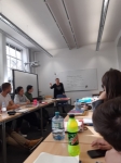 В следующий понедельник уже начались занятия по немецкому языку. Наша группа состоит из 20 человек и преподавателя. Преподавателя зовут Марина Лёйшель. Интересно, что здесь некоторые преподаватели позволяют обращаться к ним просто по имени – Марина. Но для меня это очень непривычно, и, наверное, я была единственным человеком в группе, который обращалась – «фрау Лёйшель». Наши занятия проходили с 8.30 до 10.15, затем с 10.45 до 12.30 и с 12.45 до 13.45. Официально разрешалось два пропуска. Это было очень интересно, если ты что-то не понимал, то объясняли тебе тоже на немецком – лексика, грамматика, вообще все. Полное погружение в язык. Во второй день по инициативе преподавателя мы отправились всей группой за учебником в библиотеку в центр, через неделю мы всей группой ходили в музей. Еще через неделю в Штутгарте проводилась демонстрация против загрязнения окружающей среды и нам был предоставлен выбор – уйти с конца занятия на этот митинг или продолжать, ну и конечно, большинство захотели поучаствовать, студенты везде одинаковые. По окончании занятий нас ждало самое волнительное – две контрольные и 11 октября – итоговый тест. Итоговый тест состоял из нескольких частей: 30 минут аудирование, 60 минут работа с текстом, 60 минут грамматика и столько же на сочинение. Сейчас мне предстоит повторный выбор предметов на семестр обучения по специальности, ну а пока жду результатов итогового теста по немецкому».