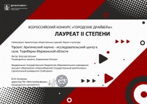Евгения Власова – «Арктический научно - исследовательский центр в селе. Териберка Мурманской области» (руководитель – старший преподаватель кафедры АРГС Наталья Боровикова).