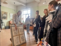 Завершающим этапом встречи стало посещение выставки детских и творческих работ в холле третьего этажа и  творческой мастерской, где старший преподаватель кафедры Дизайна и искусств Сергей Мымриков рассказал школьникам об особенностях сдачи внутреннего вступительного испытания по рисунку. Успех, как подчеркнул Сергей Владимирович, – это резонанс системы ценностей и достижений, определяемых прилагаемыми усилиями. Именно поэтому для его достижения требуется подготовительная работа, которой необходимо уделить особое внимание.