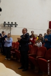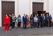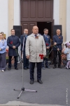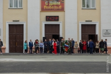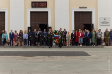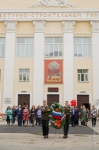 После минуты молчания и скорбного стука метронома ректор Юрий Сколубович поздравил всех собравшихся с Днем Великой Победы.