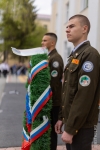 После шествия «Бессмертного полка» началась торжественно-траурная церемония чествования сибстриновцев – героических защитников Родины в годы ВОВ. Представители всех поколений – сотрудники, студенты и школьники – во главе с ректором Юрием Сколубовичем отдали дань памяти погибшим возложением венка и цветов к памятнику Героям-сибстриновцам. На нем увековечены 106 имен павших в годы войны преподавателей, работников и студентов вуза.
