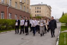 В очередной раз по университетской площади прошел «Бессмертный полк Сибстрина». Сегодняшние студенты всех институтов и факультета прошагали с портретами не вернувшихся с фронтов сотрудников и студентов.