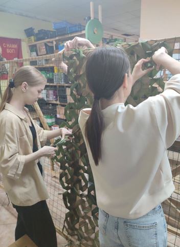 В летние месяцы студенты НГАСУ (Сибстрин), как и в прошлые годы, приняли активное участие в работе Волонтерского объединения «ТЫЛ – ФРОНТУ». Студенты специальности «Прикладная информатика» плели маскировочные сети для нужд СВО в Волонтерском Центре по адресу ул. Урицкого, 17.