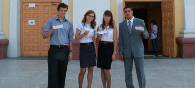 Также по традиции студентам - первокурсникам, набравшим самые высокие баллы в ходе вступительных испытаний ректором университета и почетными гостями были вручены студенческие билеты.