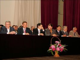 Перед собравшимися на первой встрече выступили: ректор университета Ю.Л. Сколубович, зам. Губернатора НСО К.В. Колончин, генеральный директор ООО «Дискус плюс» А.Ю Джулай, декан строительного факультета В.В. Адищев.