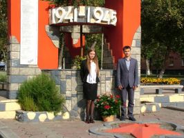 Согласно традиции студенты – первокурсники, показавшие лучшие результаты в ходе вступительных испытаний Кристина Исаенко (112 гр.), Юрий Помазкин (121 гр.), Дмитрий Бородин (153 гр.) и Александра Дзецина (101 гр.) возложили венки к памятнику войнам Сибстриновцам, павшим на фронтах Великой отечественной войны.