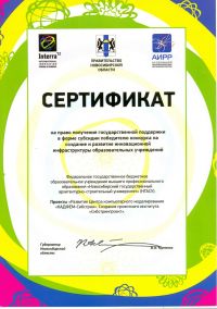 15 сентября 2012 года Губернатор Новосибирской области Василий Алексеевич Юрченко в торжественной обстановке вручил ректору НГАСУ (Сибстрин) Юрию Леонидовичу Сколубовичу сертификат, подтверждающий победу в конкурсе и право получения средств от Правительства Новосибирской области.