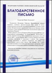 Благодарность за участие в соревнованиях по рафтингу