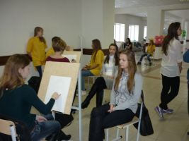 В рамках мероприятия пять наших лучших студентов-портретистов рисовали всем желающим портреты, они же и стали нашим конкурсным жюри, которое оценивало работы участников в творческих конкурсах.