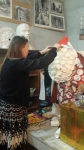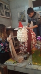 Помимо стаканчиков, в ход пошла веревка, а также новогодние аксессуары: красочно упакованные подарки, мешок и шапка Деда мороза. Работали студенты по вечерам, приходя после занятий в кабинет рисунка. Процесс создания главного героя Нового года не обошелся без трудностей и приключений (стаканчики не скреплялись, голова не держалась, веревочные ноги раскручивались), однако ребята успешно справились со всеми трудностями.