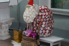 – Идея создать новогоднюю композицию пришла неожиданно, все началось с барашка. Наш руководитель, Т.С. Замура, предложила идею со стаканчиками. Мы сразу же принялись за дело. Наверное, самым трудным в работе был сбор стаканов. Но с этим заданием мы справились, даже лишние остались, – говорит студентка 112 группы Ольга Лазаревич.