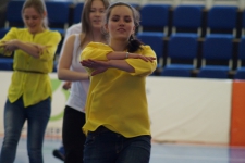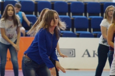 Перед началом мероприятия руководитель творческого направления ЦВВР Наталья Викторовна Бейсенова рассказала болельщикам, заполнившим трибуны СОК, об условиях флешмоба и пожелала всем командам удачи. Дело в том, что предварительно путем слепого жребия было определено танцевальное направление, в котором каждой из команд предстоит выступать: джаз (ФИИТ), спорт (СФ), народный танец (ИЭФ), латино (АГФ) и ретро (ФЭМГО).