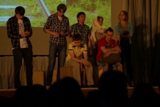 Зрители весь спектакль живо реагировали, смеялись, подтанцовывали, с удовольствием окунаясь в предложенные реальности. Каждый нашел что-то для себя, свой смысл в данной постановке. По окончанию действия зал долго не отпускали ребят со сцены. Ну а самым трогательным моментом стали объятия всех членов труппы со своим художественным руководителем. Всего в постановке приняли участие около 20 человек.