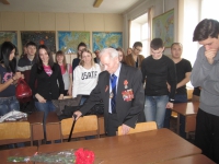 Аудитория с большим вниманием слушала Александра Петровича. Несмотря на свой солидный возраст (в сентябре ему исполнится 92 года), он очень молодым голосом, с юмором рассказывал о своем фронтовом пути. Ребят интересовало все: что такое обмотки у солдат?, как кормили?, страшно ли было?, какая первая награда? и многие другие вопросы.