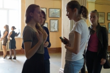 На открытие выставки в тесном кружке собрались студенты, преподаватели и сотрудники. Все они тепло благодарили студентов-художников и делились впечатлениями.