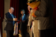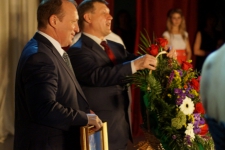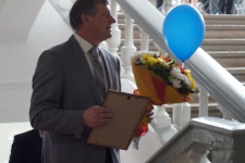 Следом поздравительную речь держали спонсоры, члены Попечительского совета и выпускники НГАСУ (Сибстрин), которых, к слову, собралось в зале немало: руководитель отделения ВСД ООО «КНАУФ Гипс» в Новосибирске Владимир Олегович Абрахин, который зачитал поздравительный адрес центрального управления группы «КНАУФ СНГ», директор МУП г. Новосибирска «Горводоканал», выпускник 1984 года Юрий Николаевич Похил, президент «Ланта-Банка» (г. Москва), выпускник 1979 года Сергей Владимирович Докучаев. Поздравительные послания прислали: генеральный директор ОАО «СибЗНИИЭП», выпускник 1973 года Сергей Федорович Траутвейн, директор ООО «СтройЦентр», выпускник 1987 года Валерий Анатольевич Наливкин, директор ООО «Рекон», выпускник 1983 года Борис Николаевич Васюта, генеральный директор компании «Новосибирск СтройМастер» Вера Кузьминична Коновалова, генеральный директор «Первый строительный фонд» Майис Пирвердиевич Мамедов. От имени зарубежных коллег университет поздравила делегация Монгольской Народной Республики, выпускники 1984-85 годов. Вместе с приветственным адресом от Министерства строительства и градостроительства Монголии, они вручили знаки «Почетный работник образования Монголии» преподавателям нашего вуза Светлане Ивановне Рудяк и Лидии Георгиевне Махорт.