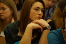 В начале мероприятия декан Лада Викторовна Шеховцова вкратце рассказала о деятельности, достижениях и планах факультета экономики, менеджмента и гуманитарного образования НГАСУ (Сибстрин). За этот год ФЭМГО существенно расширил свое участие в международном образовательном пространстве. В настоящее время он активно сотрудничает с факультетом экономики Университета Мегатренд, а также его бизнес-партнерами – Региональной инвестиционной компанией Сербии и Региональной экономической палатой г. Заечар. Кроме того, заключен договор трехстороннего сотрудничества с вузами Италии и Сербии. Лада Викторовна также обратила внимание на тот факт, что большая часть первокурсников факультета – иностранные студенты.