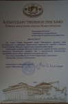 За поддержку и развитие движения студенческих отрядов на региональном и федеральном уровнях НГАСУ (Сибстрин) был отмечен Благодарственным письмом Совета депутатов г. Новосибирска.