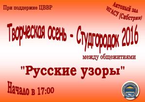 15 и 16 ноября 2016 года в нашем вузе стартует ежегодный студенческий фестиваль «Творческая осень в студгородке – 2016» между общежитиями НГАСУ (Сибстрин).