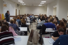 Декан факультета экономики, менеджмента и гуманитарного образования Лада Викторовна Шеховцова заверила студентов в поддержке оригинальным четверостишием: