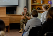 У студентов-первокурсников и сотрудников была возможность увидеть и послушать реальную историю одного из героев нашего времени и задать интересующие их вопросы. В ходе встречи Игорь рассказал о своем решении отправиться на СВО, непосредственном участии в боевых действиях, о быте и взаимовыручке на передовой, боевом духе и настроениях среди товарищей.
