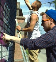 Три новых граффити украсили студенческий городок Сибстрина Три новых ярких граффити украсили студенческий городок НГАСУ (Сибстрин). Напомним, что граффити – изображения и надписи, сделанные на стенах зданий и других поверхностях с помощью баллончиков с краской, является неотъемлемой частью современной городской культуры и весьма популярно в молодежной среде. Студенты нашего университета не отстают от модных творческих тенденций, попутно облагораживая территорию кампуса. Многие из вас наверняка видели граффити с символикой университета и посвященное Дню Победы на строениях по улице Тургенева (рядом с 4-м учебным корпусом). Идея разрисовать стены принадлежит студенту 3-го курса архитектурно-градостроительного факультета Вячеславу Сподореву, которого поддерживает Профком студентов НГАСУ (Сибстрин). Ко дню рождения родного вуза был объявлен конкурс среди студентов на лучший вариант граффити. |