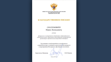 Ректор НГАСУ (Сибстрин) Юрий Сколубович награжден Благодарственным письмом Минобрнауки РФ Ректор НГАСУ (Сибстрин) Юрий Сколубович награжден Благодарственным письмом Минобрнауки РФ за развитие международного молодежного сотрудничества и активное вовлечение обучающихся в мероприятия Всемирного фестиваля молодежи. Всемирный фестиваль молодежи – это крупнейшее международное молодежное событие 2024 года, организатором которого выступило Федеральное агентство по делам молодежи (Росмолодежь). Он прошел с 1 по 7 марта на Федеральной территории «Сириус» по Указу Президента России Владимира Путина. В нем приняли участие 20 тыс. российских и иностранных молодых лидеров в области бизнеса, медиа, международного сотрудничества, культуры, науки, образования и других сфер. В организации и проведении фестиваля было задействовано 5 тысяч волонтеров со всех регионов России. |