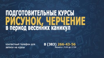 Центр довузовского образования НГАСУ (Сибстрин) объявляет набор на каникулярные подготовительные курсы по рисунку и черчению в период весенних школьных каникул (с 24 по 29 марта 2025 года).