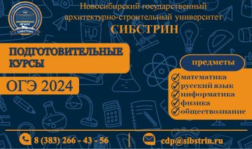 НГАСУ (Сибстрин) приглашает на курсы подготовки к сдаче ОГЭ в 2024/2025 учебном году Центр довузовского образования НГАСУ (Сибстрин) приглашает на курсы подготовки к сдаче ОГЭ в 2024/2025 учебном году. Подготовка к сдаче ОГЭ ведется по следующим предметам: математика русский язык информатика физика обществознание Подготовительные курсы – это: эффективная подготовка к экзаменам; углубленное изучение предметов с ведущими преподавателями университета; повторение и систематизация материала, изученного в школе. Прием документов на курсы осуществляется в будние дни с 9.00 до 12.00 и с 13.00 до 17.00. Мы находимся по адресу: г. Новосибирск, ул. Ленинградская, д. 113 (главный корпус), каб.112а (Центр довузовского образования). |