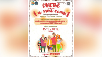 Приглашаем преподавателей и сотрудников НГАСУ (Сибстрин) поделиться своим счастьем! Семья – самое главное в жизни для каждого из нас. Это ощущение своей нужности близким, вера в то, что есть на земле место, где тебя ждут и любят. Приглашаем вас принять участие в конкурсе презентаций «Счастье – это я и моя семья» в рамках Года Семьи в России и поделиться с нами теплыми и яркими моментами! Ведь вы не только профессионал своего дела, но и ДУША своей семьи. Участниками конкурса могут стать профессорско-преподавательский состав и сотрудники НГАСУ (Сибстрин). Начните так: «Меня зовут (ваше ФИО), на работе я (ваша должность), но дома я ...» |