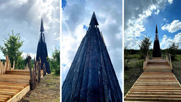 Проголосуй за команду студентов ИАГ НГАСУ (Сибстрин) в проекте Древолюция'24! Архитектурный практикум в этом году проходил на туристической тропе "Галическое Заозерье", на территории села Туровское, Костромской обрасти. Он проходил в два этапа. На первом этапе в течении 5 дней ребятам надо было определиться с местом расположения объекта, придумать идею и название, нарисовать концептуальные эскизы на тонких фанерных листах, создать макет из дерева, сделать чертежи основной формы и составить смету строительных материалов. На второй этап отводилось 8 дней, в этот период были непосредственная работа с материалом и возведение объекта на местности. Процесс возведения был сложен: конструкция была запланирована 9 метров в высоту и 2 метра в глубину; расстояние между основными опорами должно было быть не меньше 50 см; боковая сторона треугольной пирамиды - 2,5 метра. |