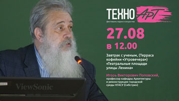 Приглашаем на «Завтрак с ученым» в рамках фестиваля науки и искусства «ТехноАрт» 27 августа 2024 года, в рамках фестиваля науки и искусства «ТехноАрт» в 12.00 состоится «Завтрак с ученым» , на котором можно будет познакомиться с самой театральной улицей города - ул. Ленина. Лектор : Игорь Викторович Поповский, профессор кафедры Архитектуры и реконструкции городской среды НГАСУ (Сибстрин) Регистрация по ссылке https://clck.ru/3Cqgm8 Напоминаем, что с 26 августа по 1 сентября улица Ленина в центре Новосибирска превратится в главную научно-культурную улицу страны. Завтраки с учеными, театральные спектакли, научпоп-лекции, кинопоказы под открытым небом, интеллектуальные игры, – гости «ТехноАрта» смогут посетить более 50 бесплатных мероприятий. С 30 августа по 1 сентября приглашаем посетить стенд НГАСУ (Сибстрин), на котором можно узнать подробную информацию об университете и открытом образовательном пространстве «ОРИЕНТР». |